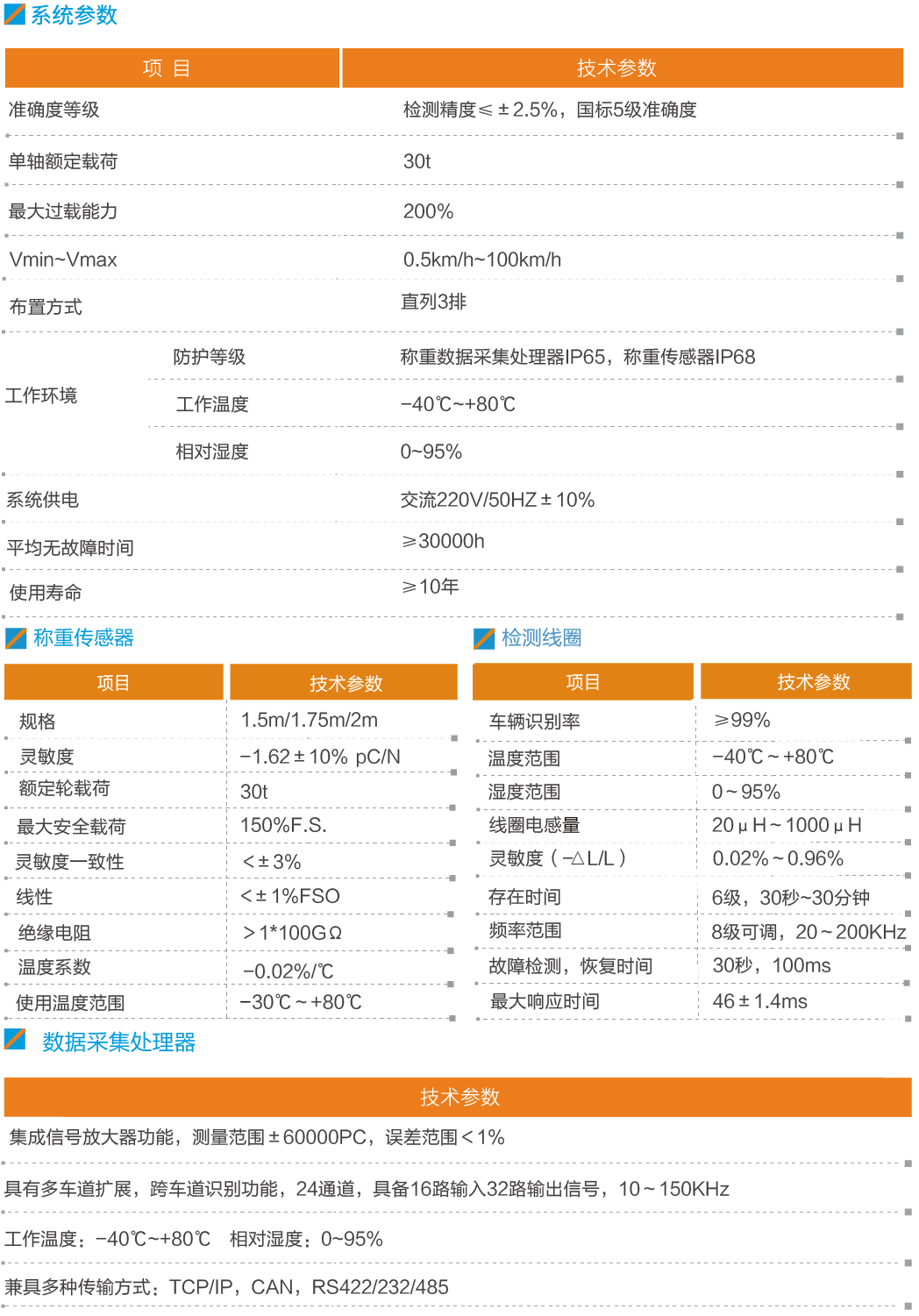 符合國標的系統設計:系統整車總重量動態準確度等級滿足《動態公路車輛自動衡器JJG907-2006》國標準確度等級5級,檢測速度范圍0.5~100km/h,達到自由流無感的車輛動態稱重檢測目的;